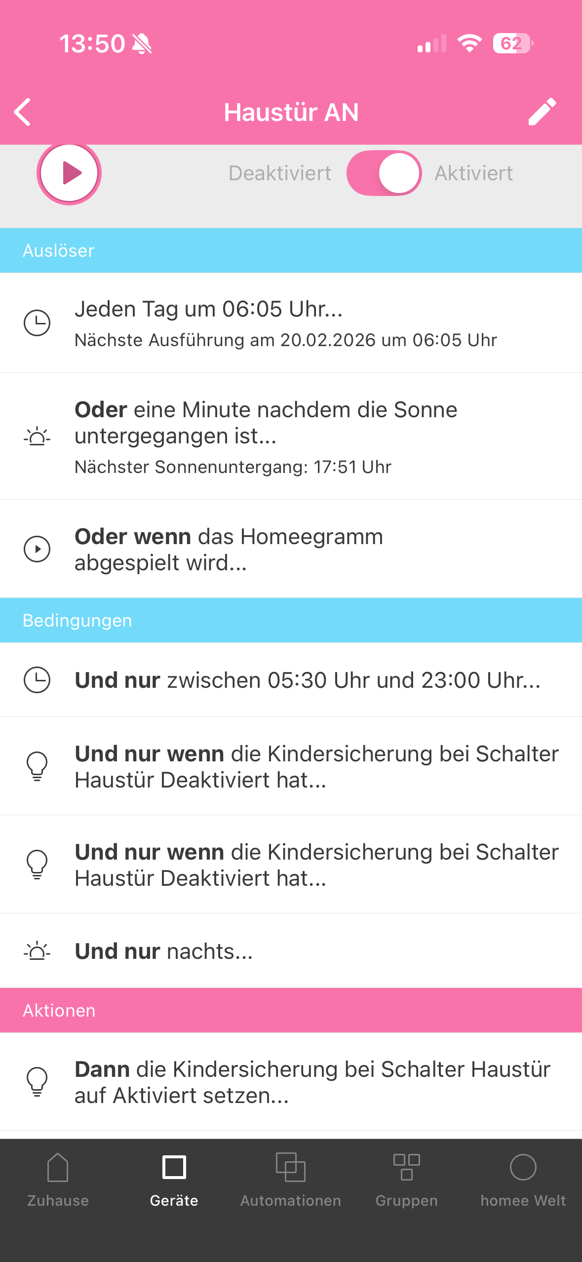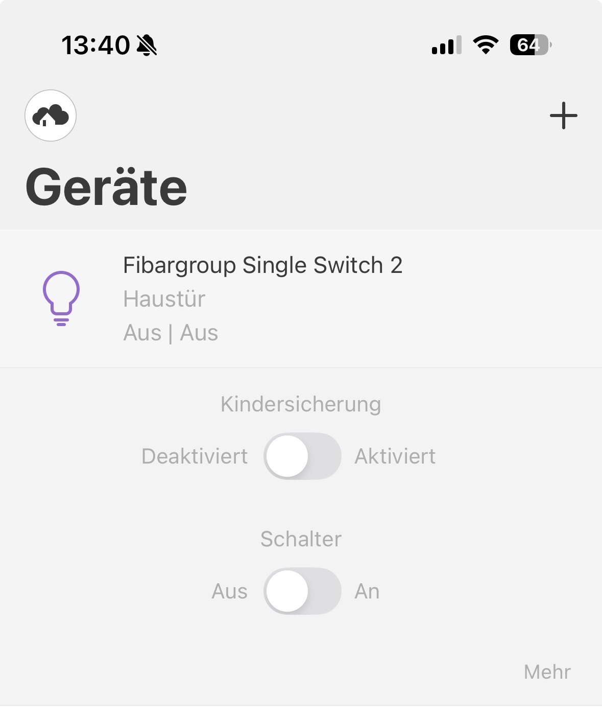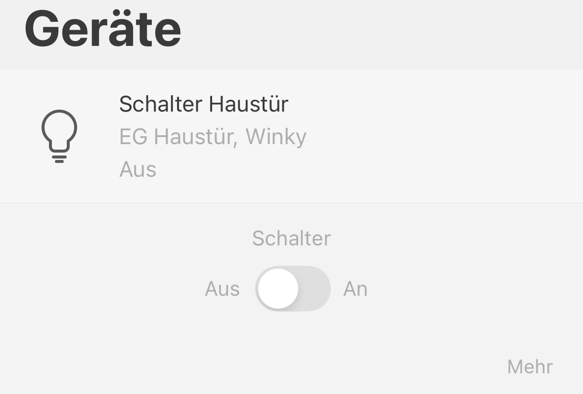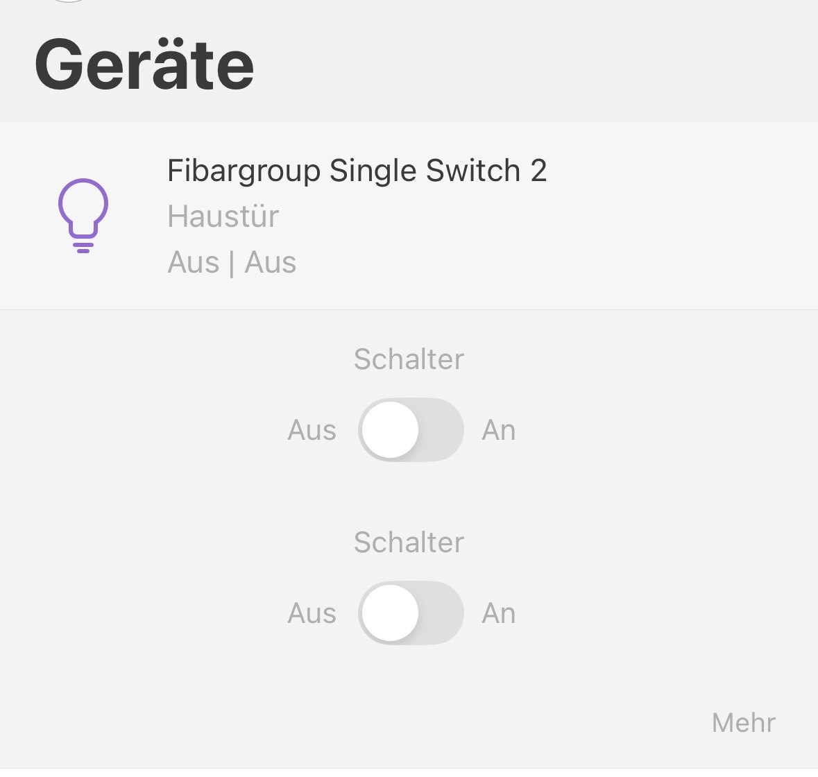 Im Master sieht man zuerst nur Schalter 1 (Screenshot fehlt leider), doch wenn über die App geschaltet wird, ist der Toggle weg und es sieht so aus:
