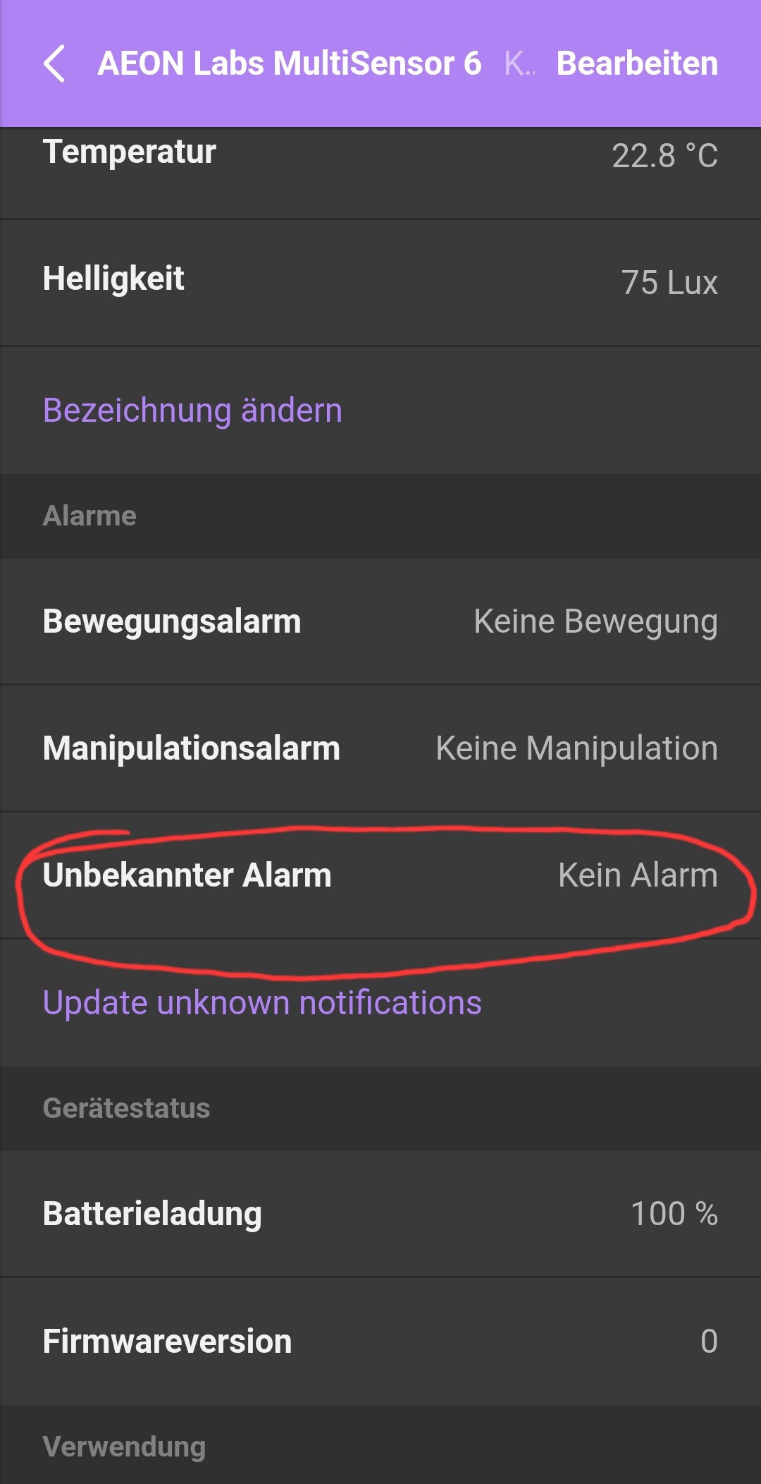 Ich hatte beim MS6 allerdings vorher auch schon einen Unbekannten Alarm, der ist jetzt immer noch vorhanden. Offenbar wurde das Attribut durch das Update nicht entfernt: