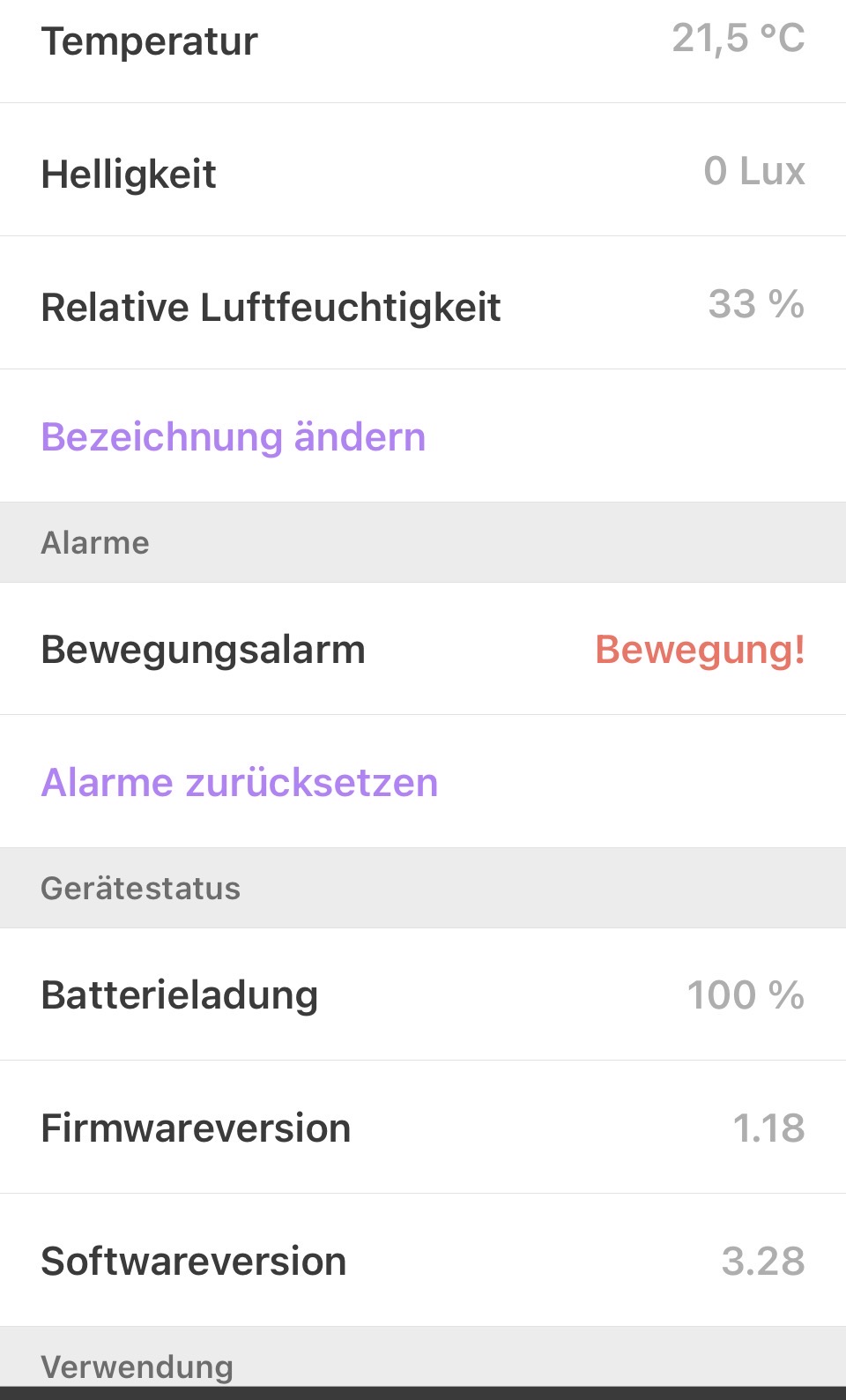 Helligkeit , Luftfeuchtigkeit und Bewegungsalam fehlen.