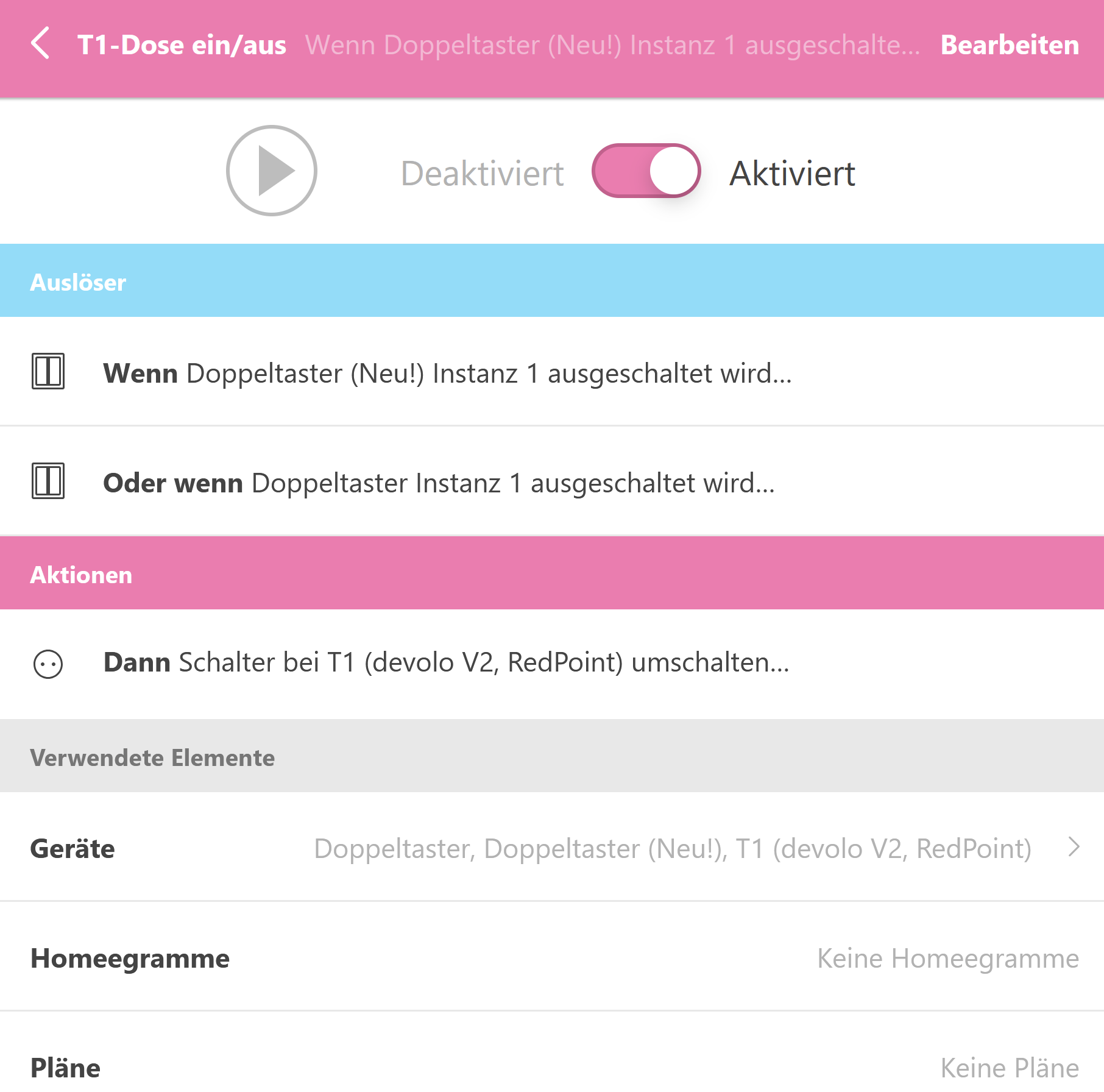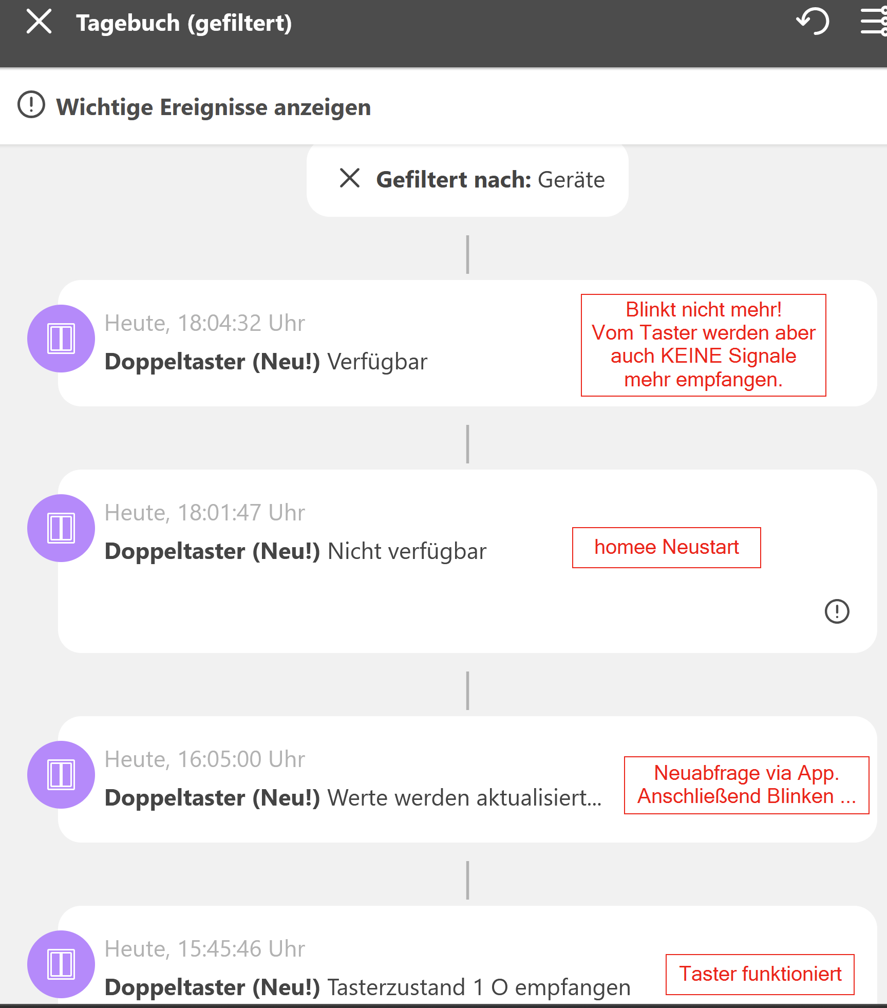 Die Schalter blinken jetzt zwar nicht mehr, sie lösen aber auch die verknüpften Homeegramme nicht mehr aus.