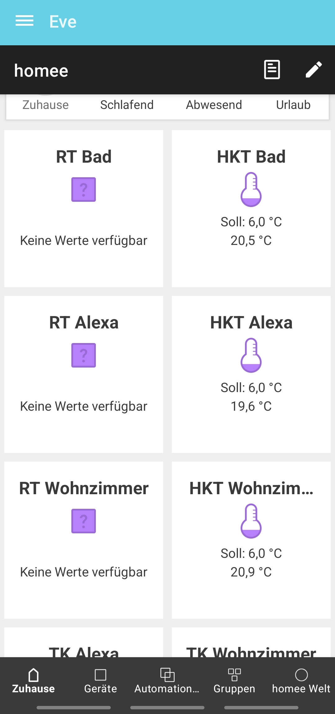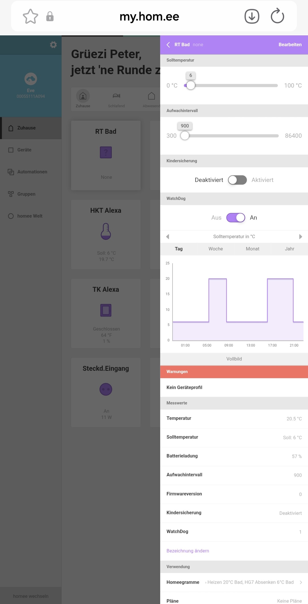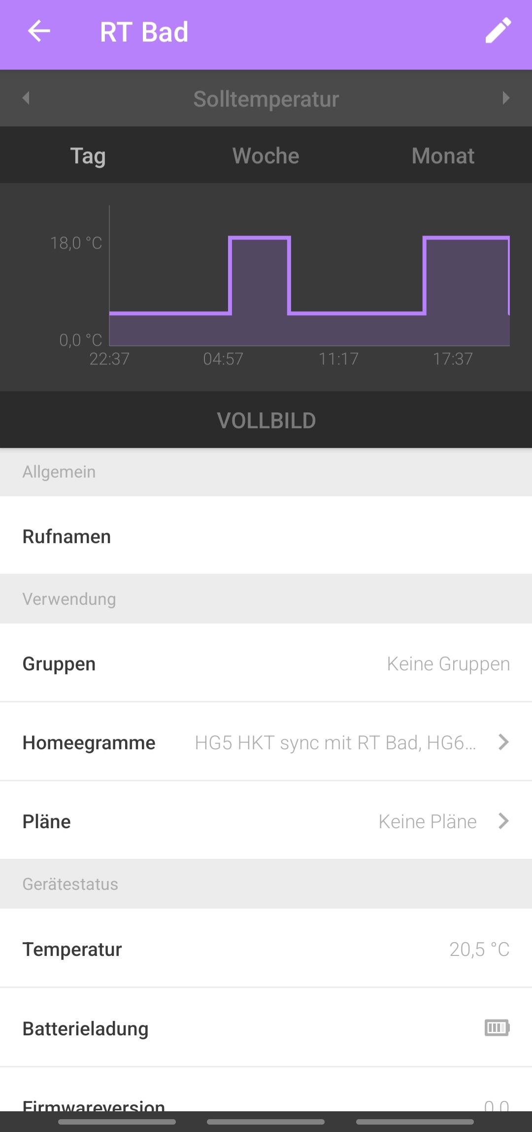 Klickt man auf das Gerät so fehlt in der Homee App der Balken für die Sollwertänderung.