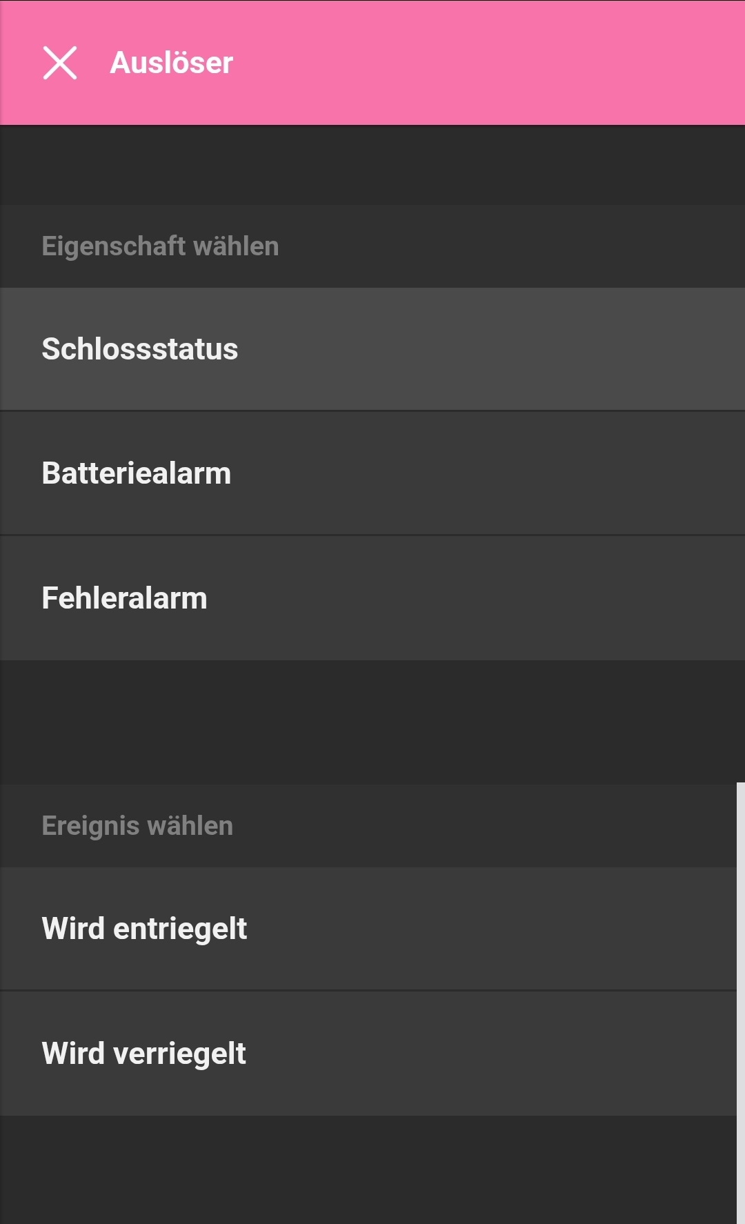 Das Nuki Türschloss bietet dir in den HGs folgende Auslöser für Aktionen an: