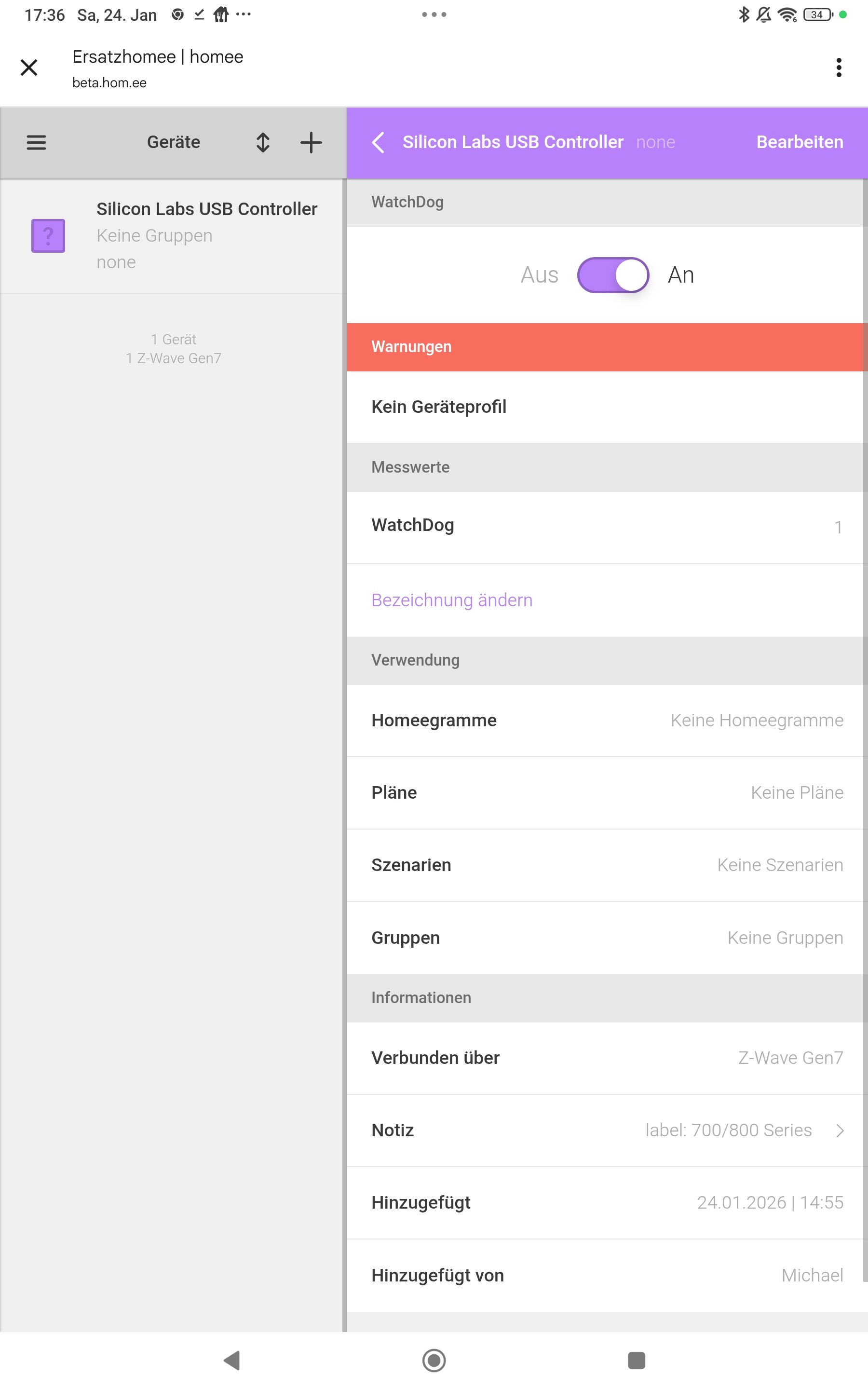 Noch nicht ganz, warum wird mir das Gerät denn immer noch nicht angezeigt weder in der Android noch in der BETA Web-App?