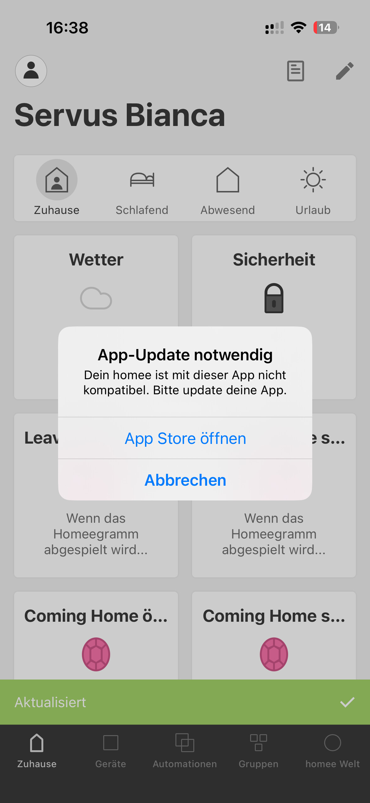 Fehlermeldung bezüglich App Update