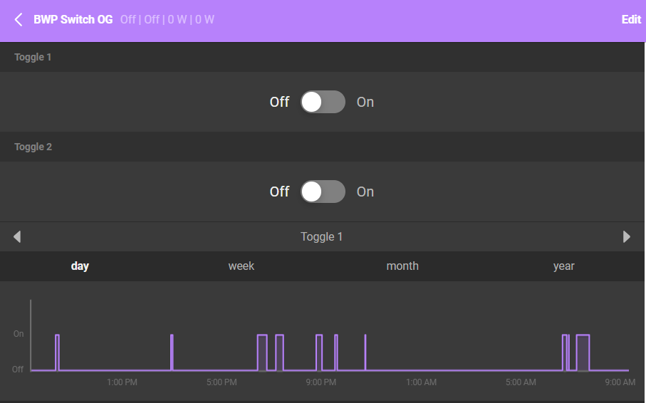 Was ich sagen kann: Manuell, also mit dem davorgesetzten mechanischen Schalter, bekomme ich das Licht geschaltet - Relais klackt, Licht geht an und auch aus. Aber homee bekommt nichts mit und somit bleibt auch die Brauchwasserpumpe aus.