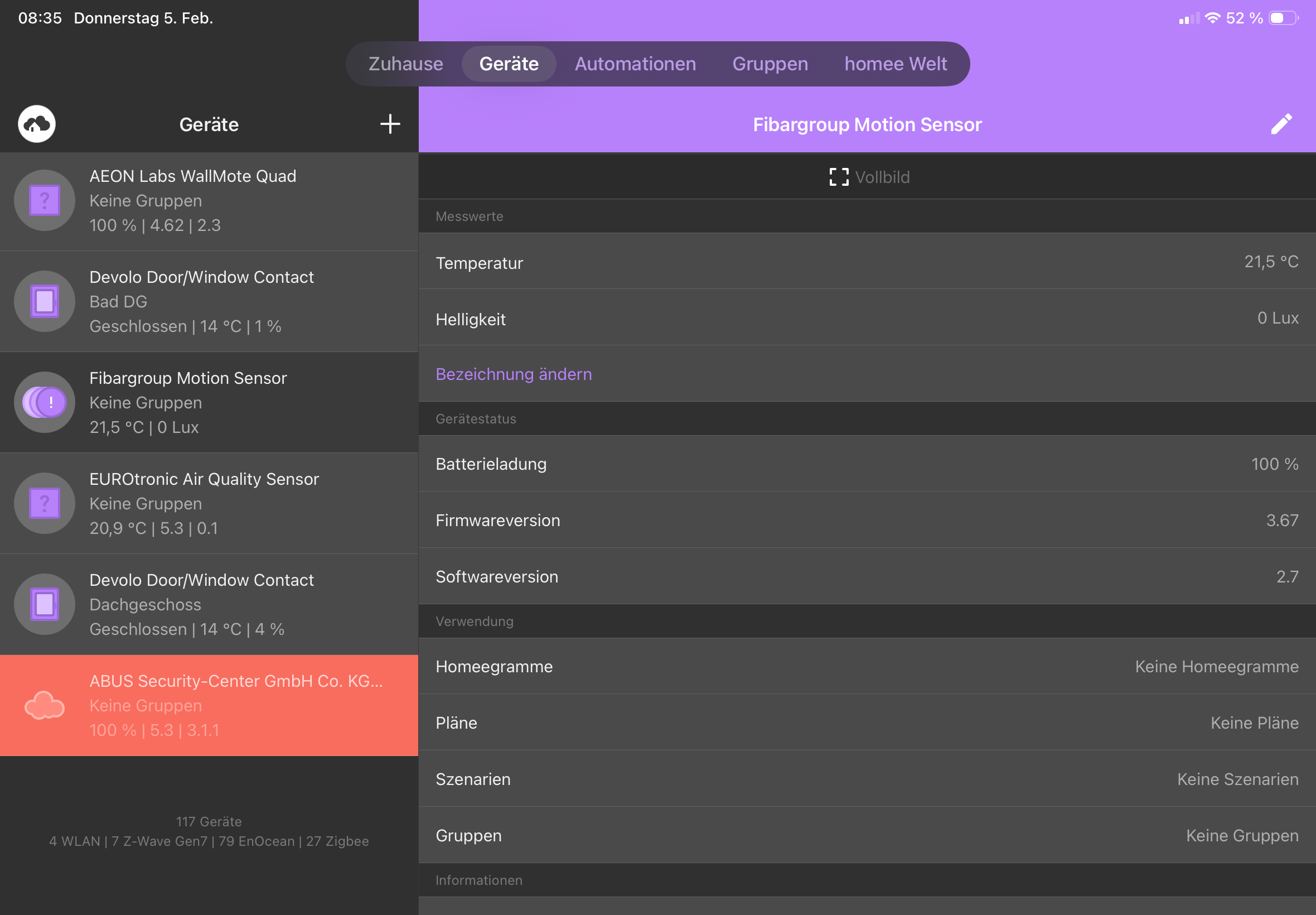 bei o.g. Gerät werden die Diagramme in Homee nicht angezeigt, sowie werden keine Bewegungen angegeben bzw angezeigt.