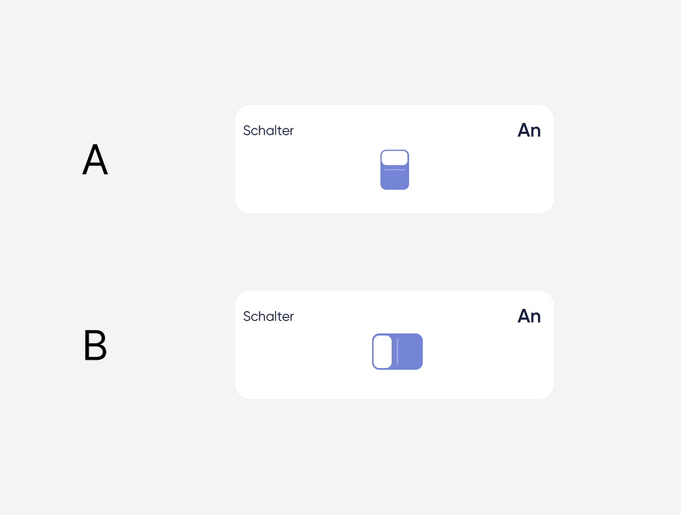 Gute Frage, ich interpretiere das weiße Rechteck mit den abgerundeten Ecke als Schalter - Bei B würde er in der Stellung off stehen. Genau so wie in der aktuellen App. Off links On rechts nebenbei bemerkt finde ich auch den runden aktuellen Schalter besser erkennbar.