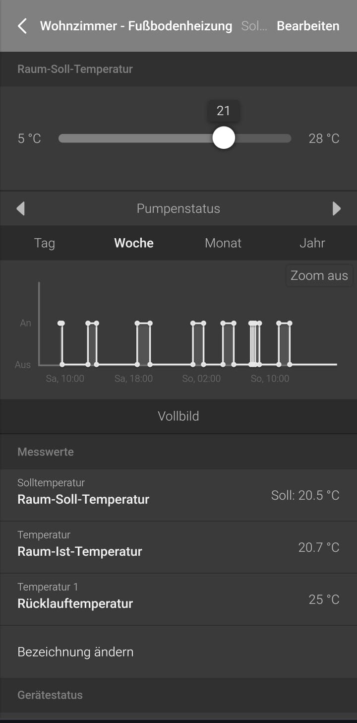 Zunächst wollte ich, ein Raumthermometer an Homee koppeln und darüber mit ESP32+Relaisborad meine Stellantriebe bzw. meine Umwälzpumpe schalten. Davon bin ich allerdings im Laufe des Projektes abgekommen. Einerseits weil ich kein passendes, günstiges Thermometer gefunden habe (habe nur den Brain-Cube und Zigbee), andererseits, weil Homee als verbindendes Element meine Heizung auch schnell außer Betrieb setzen könnte.