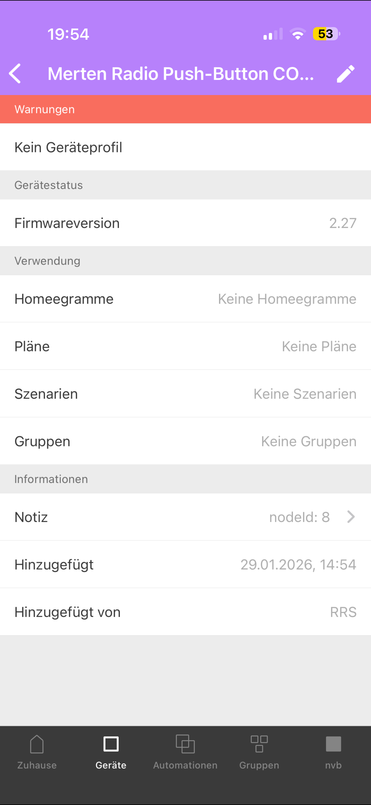 Der Taster lässt sich anlernen aber leider ohne Geräteprofil.