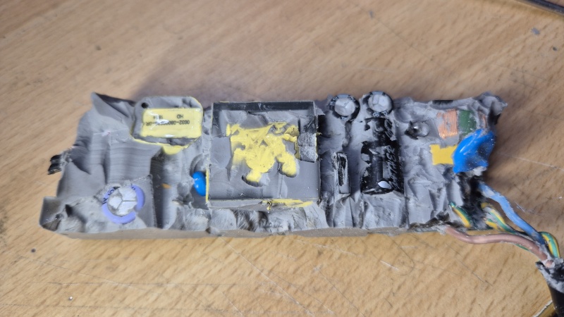 Das originale Netzteil ist übrigens in einem Kunststoffgehäuse mit einer Gummimasse vergossen worden. Durch die fehlende Möglichkeit zur Luftzirkulation um die Bauteile kann es hierbei zum Hitzetod einiger Bauteile führen. Ich hatte mal versucht, an die Bauteile vorzudringen, es dann aber irgendwann aufgegeben.