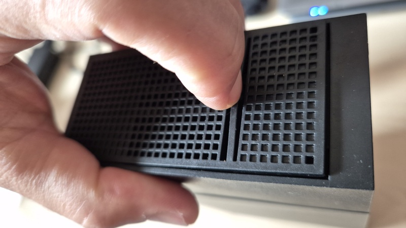 Das Gitter hinter dem Netzteil kann nach unten herausgeschoben werden.