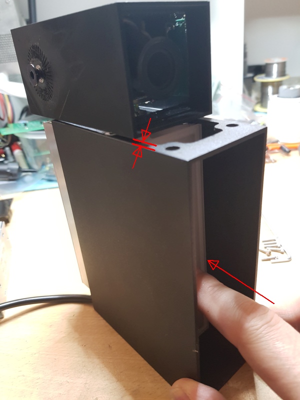 Ich habe mir daher mit meinem 3D-Drucker ein Gehäuse gedruckt, um wenigstens den Berührungsschutz sicherzustellen.
