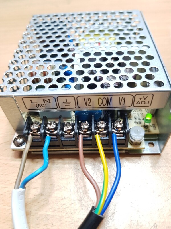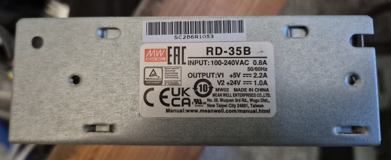 Dabei bin ich schnell auf das Meanwell RD-35B gestossen. Dies liefert 24V bei 1A und bei 5V sogar 2,2A. Das Netzteil gibt es z.B. auf ebay für ~10€ + Versand.