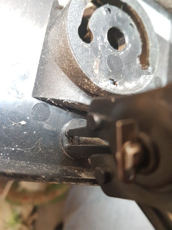 Wenn die Kamera nun auf der Werkbank liegt, sollte sie umgedreht werden, so dass das Bodengitter oben ist. Mit einem Fingernagel oder kleinen Schraubendreher vorsichtig die Verriegelung leicht nach hinten drücken und das Gitter anheben und entfernen.