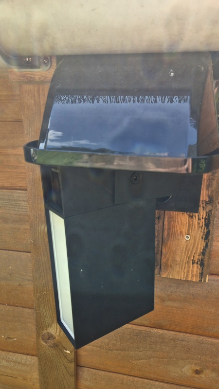 Da ich die Kamera an unserer Gartenhütte direkt unter der Regenrinne montiert habe, habe ich ihr zur Sicherheit noch ein Schutzdach spendiert.