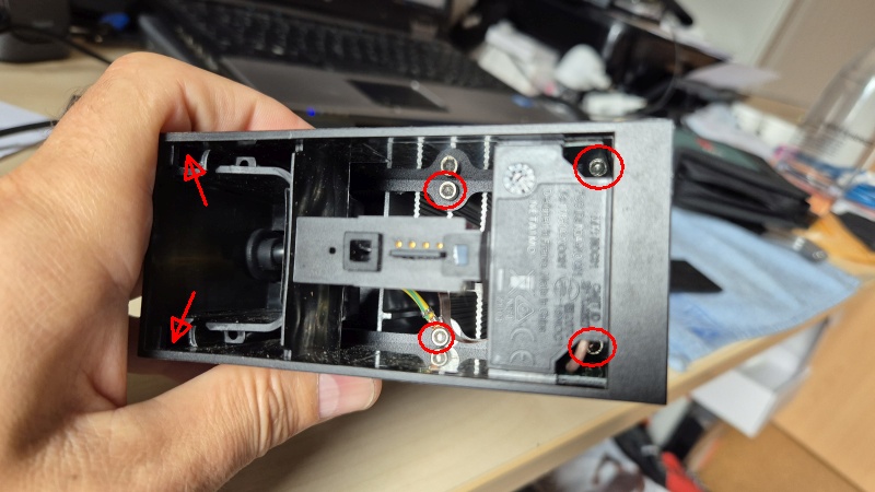 Nach dem Einschieben in das Metallgehäuse können wieder die 6 Schrauben befestigt werden.