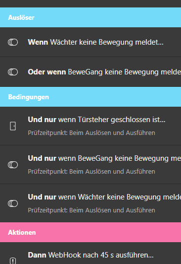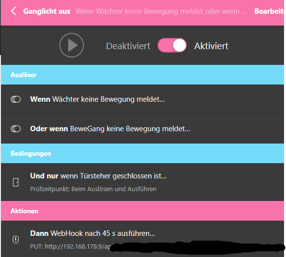 Fürs einschalten habe ich noch gleich einen Webhook dazu gebaut der alle Lichter ausmacht.