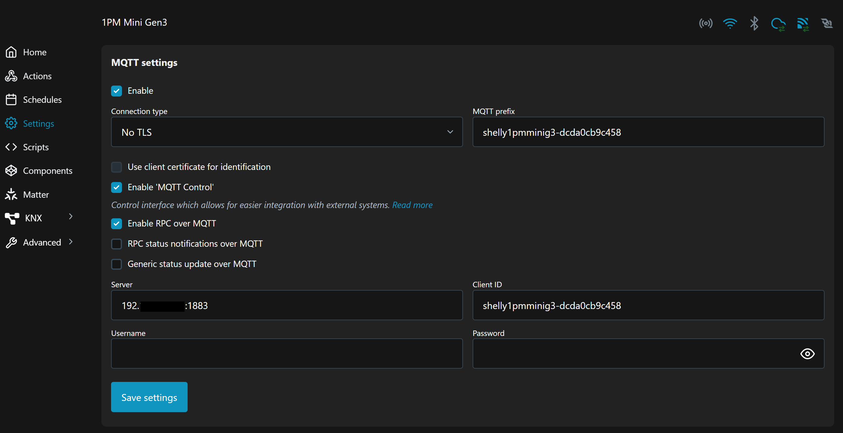 In MQTT habe ich die IP des homee :1883 eingetragen. Wie bei meinen anderen Shellys auch. Funktioniert leider nicht.