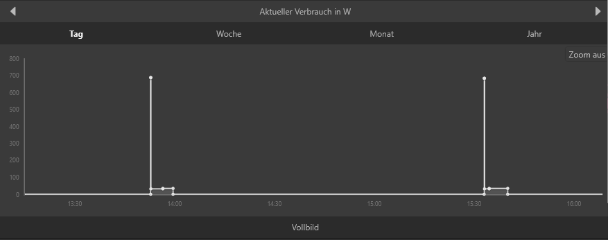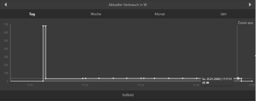 Mein Gefrierschrank verbraucht laut homee ca. 35 W für ca. 6 min.
