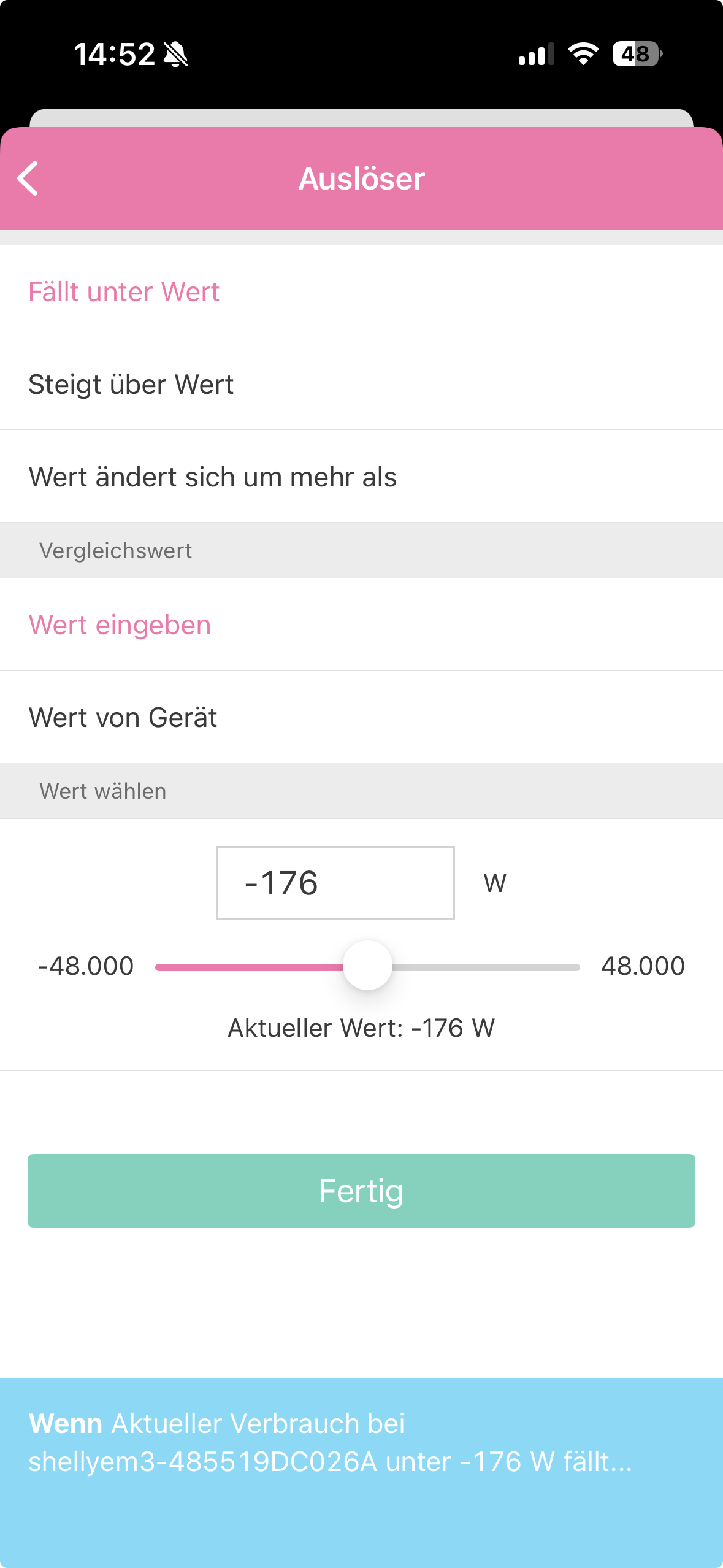 Beim 3EM Pro werden von homee tatsächlich nur positive Werte als möglicher Auslöser angeboten.