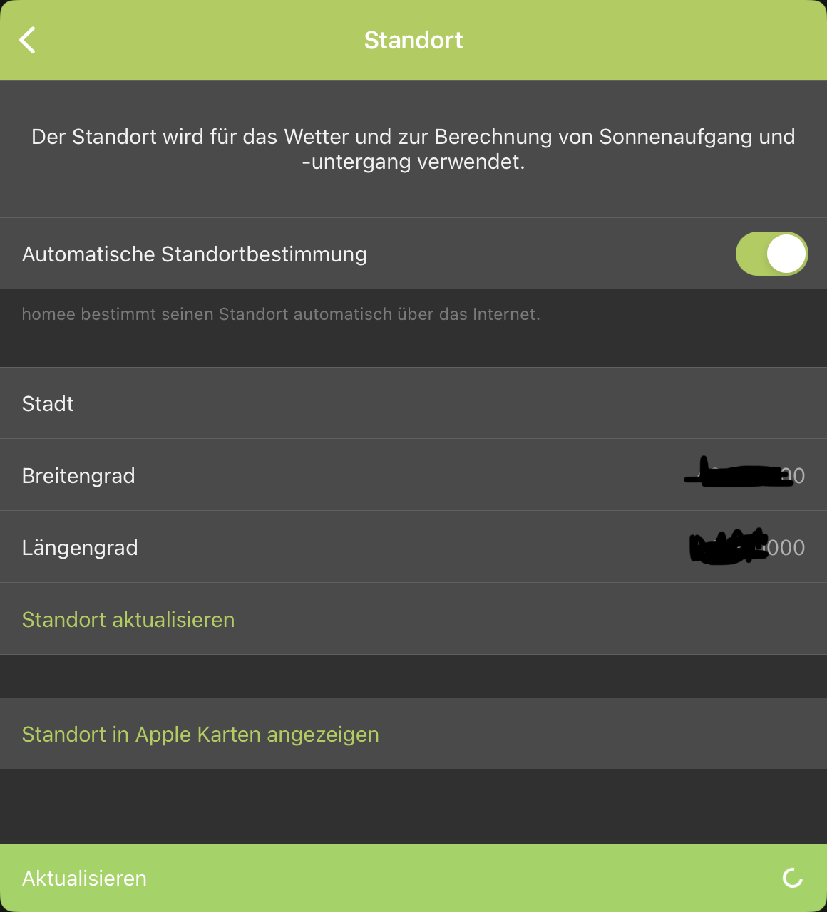 Im Zuge des letzten Bugs zum Thema Wetter aktualisieren fehlgeschlagen, hatte ich kurzzeitig mit der Standortaktualisierung rumgespielt.