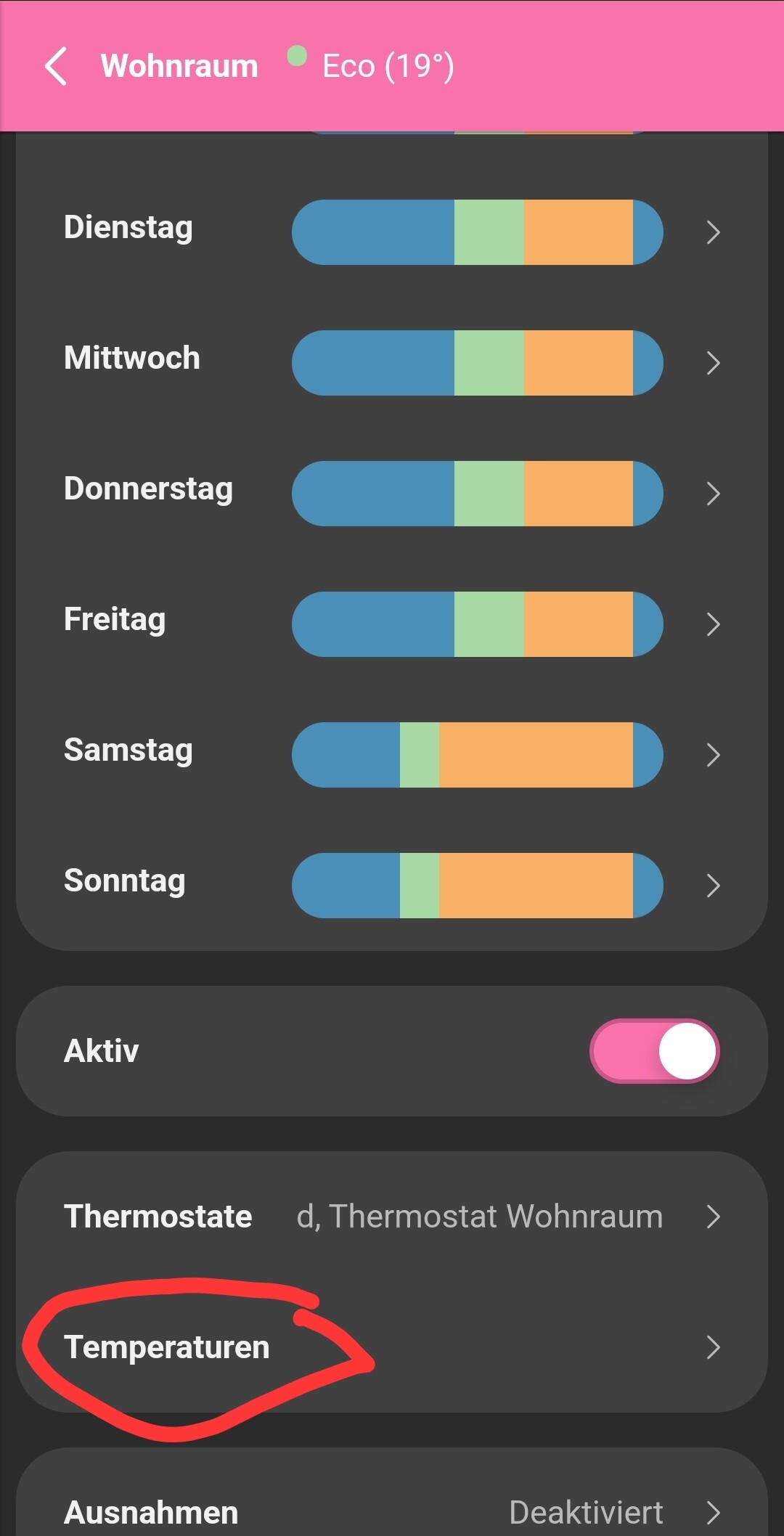 Hallo zusammen. Ich suche bereits eine ganze Weile und werde nicht fündig. Wo kann ich die Temperaturbereiche für Komfort+, Komfort, Ec und Nacht ändern? Ich meine ich hätte das schon mal machen können, finde allerdings die Einstellungsoption nicht mehr. Habe bei Homee in Web und App gesucht, sowie bei meiner CCU2. Kann mir jemand einen Tipp geben? viele Grüße…