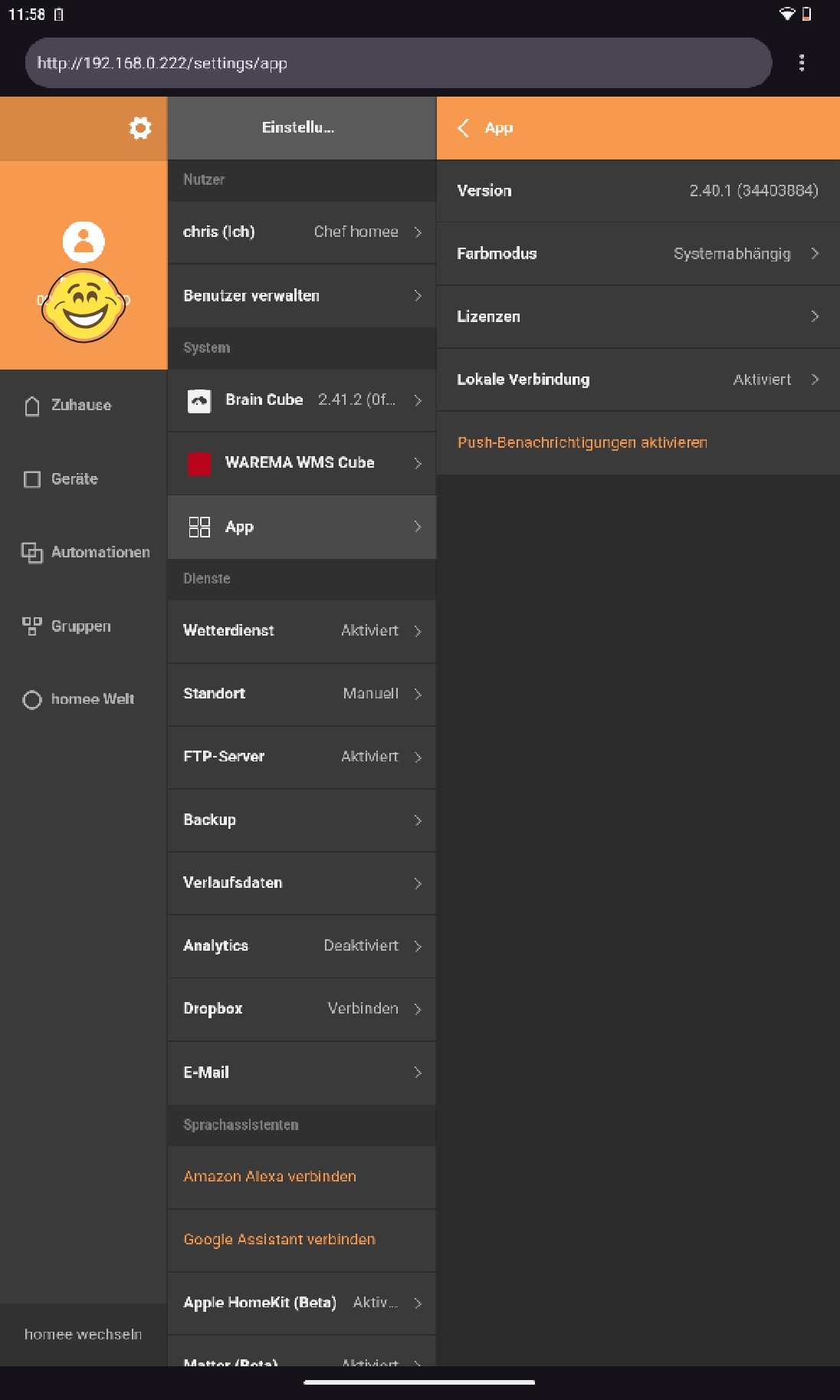 Beide Browser benutzen doch die gleiche lokale APP auf dem gleichen Homee.