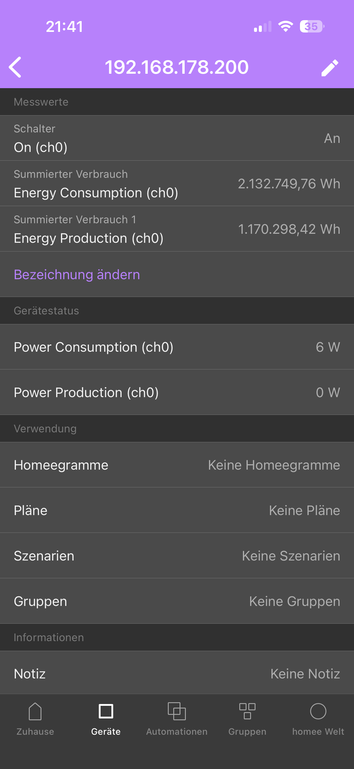Ich frage mich jedoch, ob das eigentlich noch Sinn macht immer mehr an den homee „dran zu basteln“. Gefühlt wird dein homee doch auch schon mit mehr Eigenlösungen gesteuert als mit homee selber. Ist homee da nicht allmählich eher eine Fußfessel für dich ohne die du dich noch viel freier bewegen könntest? Das sind natürlich alles nur gefühlte Werte aus meiner Perspektive. Aber für mich sieht es so aus, als wenn du dich bei HA & Co viel freier entfalten könntest.